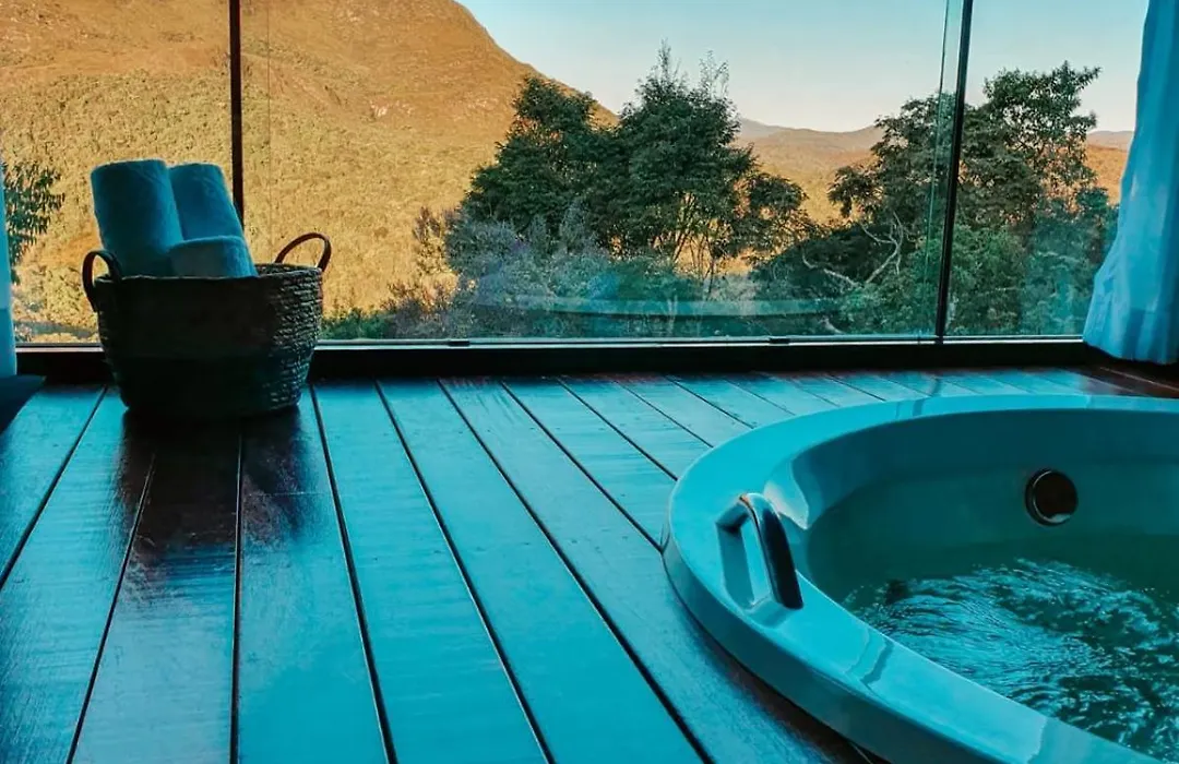 A pousada Loft Carnavalet - Hospedaria Vivenda Valentini oferece vista para a montanha. Há também roupões, juntamente com banheira de spa, casa de banho separada e chuveiro.